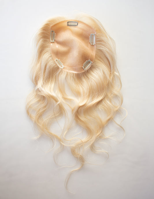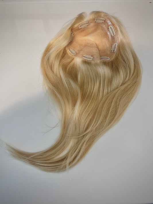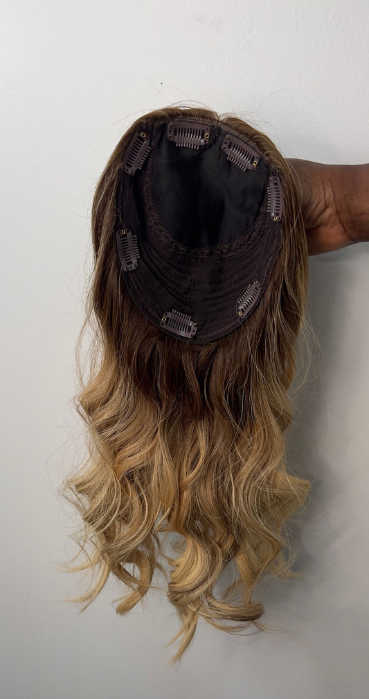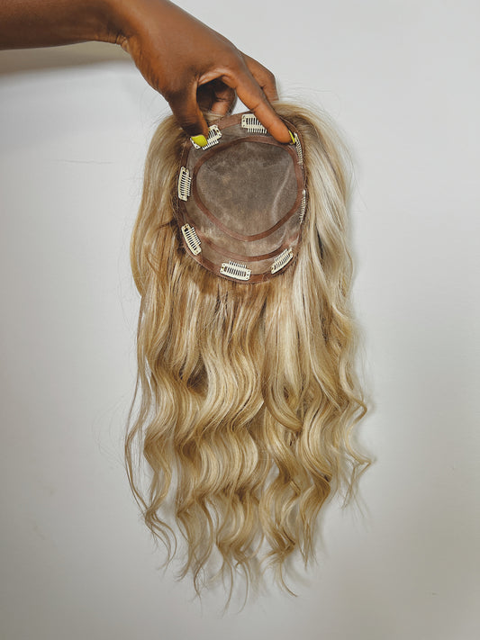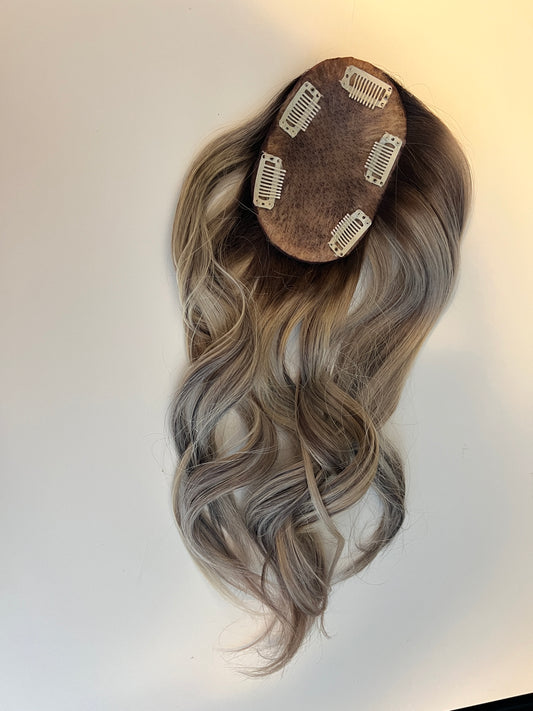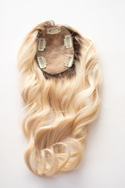16 Inches Small Topper - Blonde with Dark Ash Brown Root