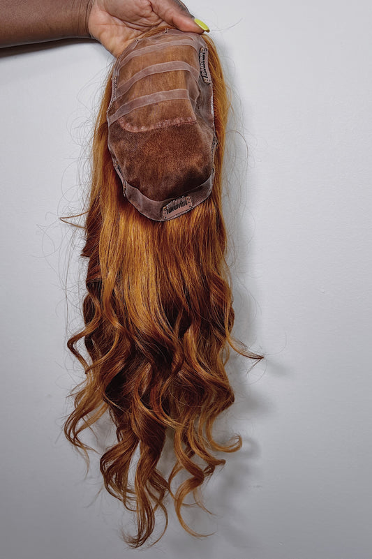 18 Inches Medium Topper - Ash gold with Brown Highlights