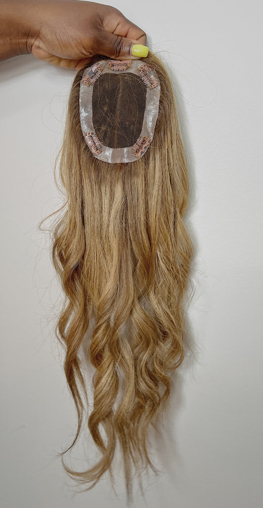 18 Inches Silk Base Medium Topper - Blonde with Brown Highlights