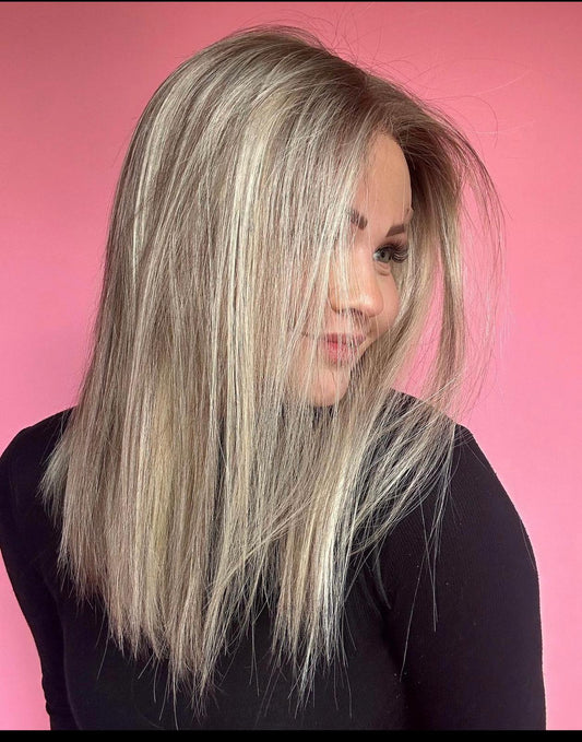 Maya Waves 14 Inches with a matching 4x4 Closure in Ash Blonde and Brown Highlights