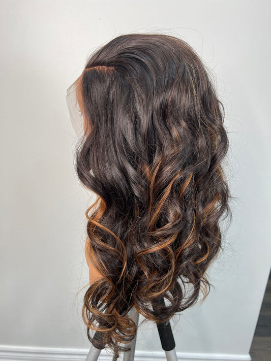 Elin Waves in Dark Brown and Honeyblonde 16 Inches with 13x4 Frontal ! Weaves are so soft and retains very good waves