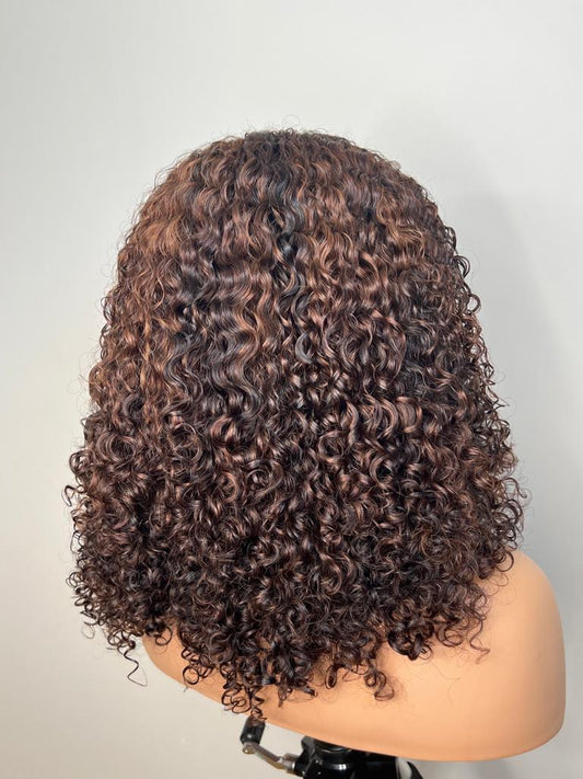 Mongolian Bounce 14 Inches 6x6 Swiss Lace Wavy Dark Auburn Wig