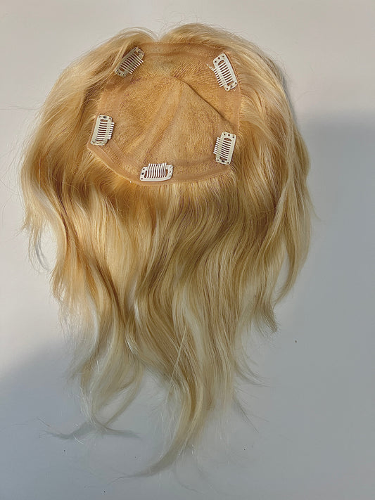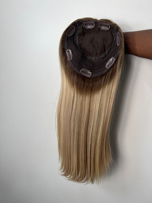 16 Inches Small Topper - Blonde with Dark Ash Brown Root